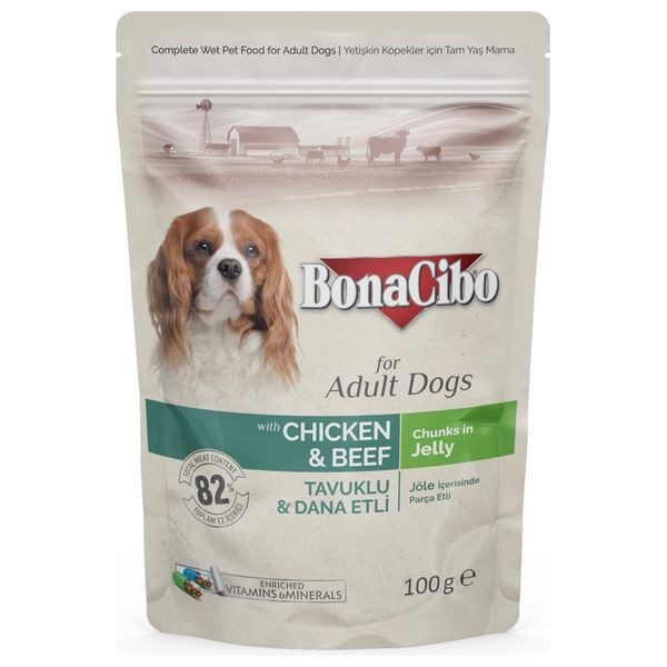 طعام كلاب بوناسيبو للكلاب البالغه بالدجاج واللحم - 100 غرام