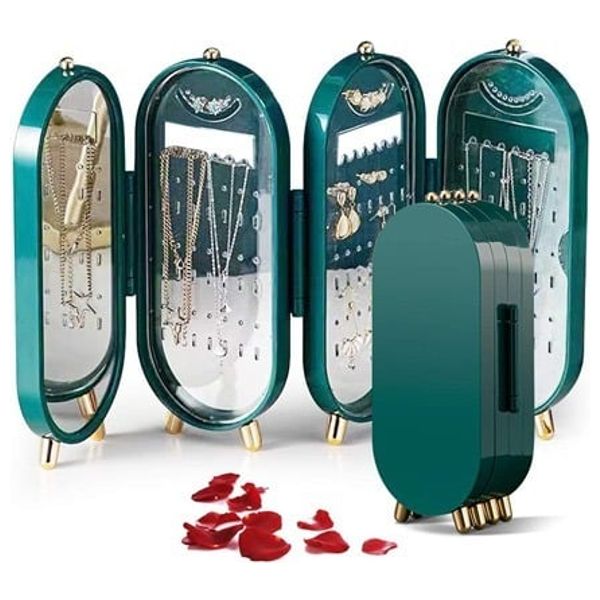 حافظة مجوهرات لتعليق المجوهرات مع مرآة, 4 أماكن