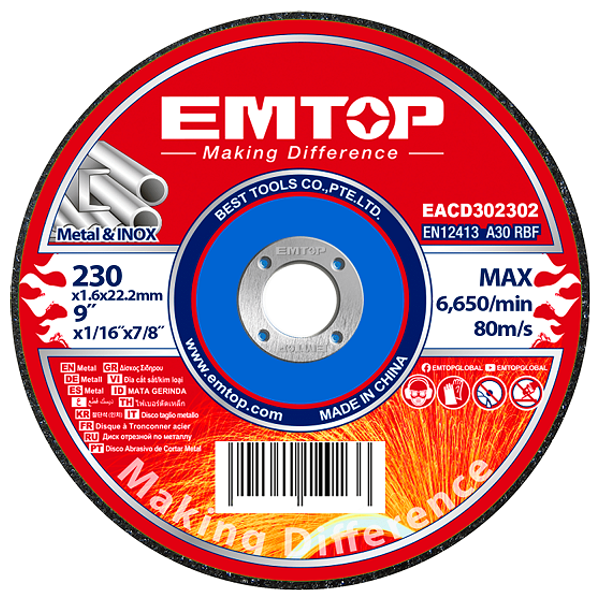 230 ملم (9 انش) X 1.6 ملم (1/16 انش) X 22.2 ملم (7/8 انش) سنتر مسطح يستخدم في قص المعادن