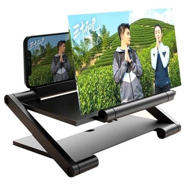 ستاند مع عدسة مكبرة لشاشات الهواتف المحمولة, مصنوع من البلاستيك, تتيح للمستخدم امكانية تكبير صورة عرض الفيديوات ومشاهدة الأفلام بشاشة اكبر ومريحة للعين.