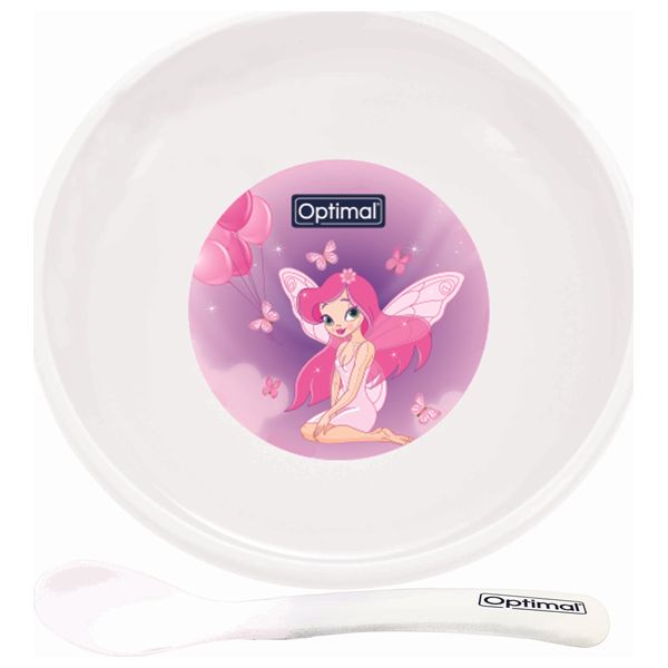طبق تغذية للاطفال مع ملعقة اوبتيمال - ابيض