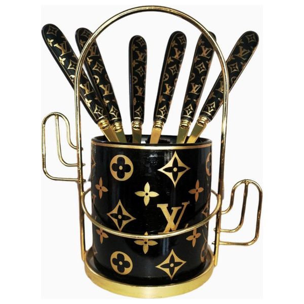 - حافظة ملاعق + ملاعق عدد 6
