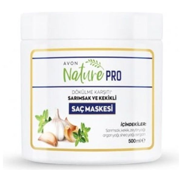 Avon hair mask, a natural, gluten-free formula rich in garlic, thyme, nettle oil, olive oil, argan oil and shea oil nourishes the hair, reduces hair fall and gives it shine.