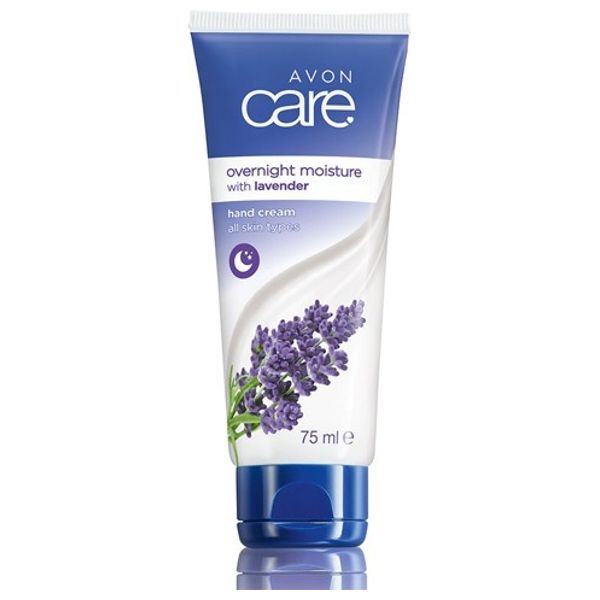 Avon Moisturizing Hand Cream, a formula enriched with lavender oil and vitamin E that moisturizes for up to 24 hours and works to nourish the skin and increase its elasticity with a soothing lavender scent, suitable for all skin types.