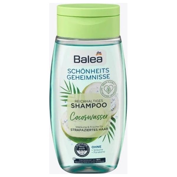 shampoo for dry hair with herbal extracts of green coconut gently cleanses and intensely hydrates with sugar beet betaine without silicone Balea moisturizing shampoo for dry hair. Silicone-free formula with herbal extracts of green coconut provides intensive care. Hydrates the scalp and restores the hair's silky shine.