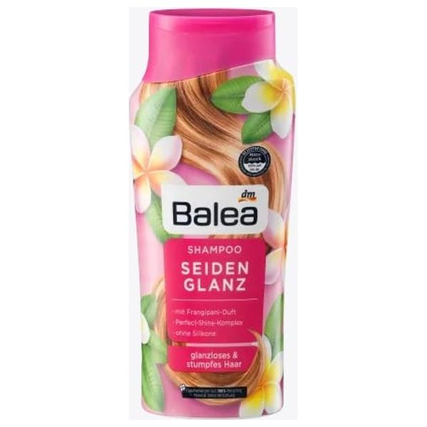 For lackluster and dull hair Perfect Shine Complex With frangipani scent Without silicones The Balea silk gloss care shampoo with frangipani scent gives your hair a radiant shine and suppleness - right to the tips. The mild formula cares for your hair, thanks to the building complex with vitamin B3 and provitamin B5, making it wonderfully supple and conjuring up a shimmering shine in your hair. The skin tolerance is dermatologically tested. Recipe without microplastics and purely water-soluble synthetic polymers.