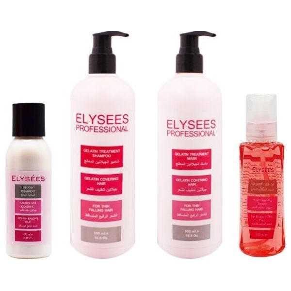 Haircare set with gelatin extract from Elysees for weak and damaged hair. It thickens hair, reduces hair loss, gives strength and luster, and eliminates tangles and dryness of hair. The set contains: