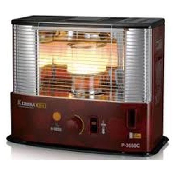 Kerona Heater - P-3550CDELUXE - Brown Type: Oil Heater Ignition Type: Manual Input Rating: 12500 BTU/hour Burning Hours: 12 - 13 hrs Tank Capacity: 5.2 L Fuel Consumption: 0.36 Ltr/h Dimension: 640Wx306Hx500D