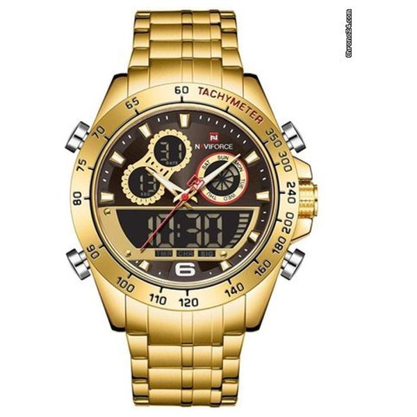 Naviforce Watch nf9188 For Men - Analog Display, Stainless Steel Band - Gold